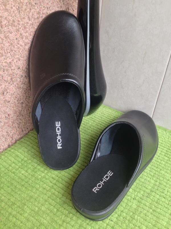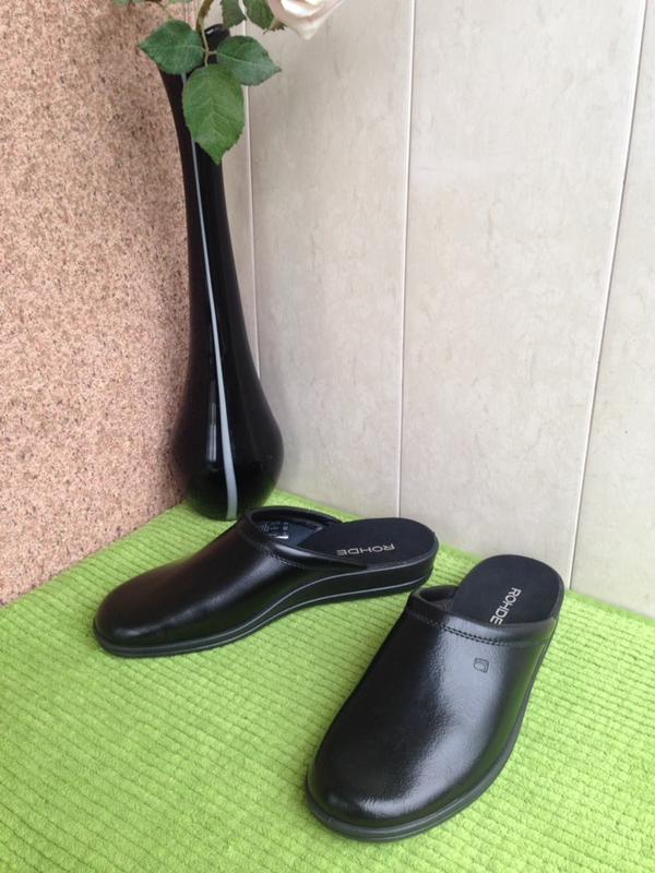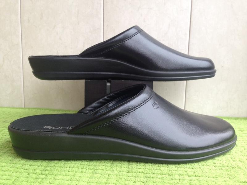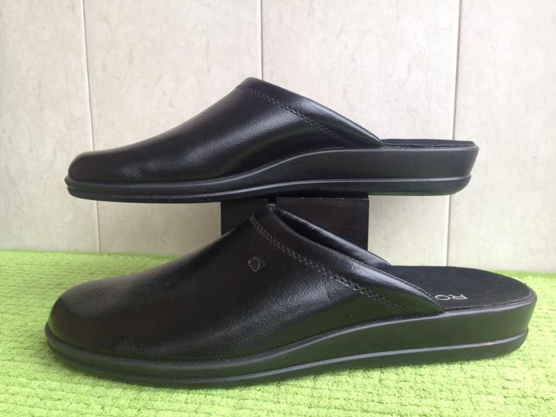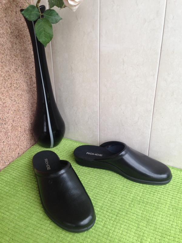 Классические мужские тапочки / "сабо " черного цвета от немецкого бренда ROHDE , изготовлены из натуральной кожи , имеют подошву из лёгкого резиноматериала . Новые , неношеные , без упаковки ( сток )