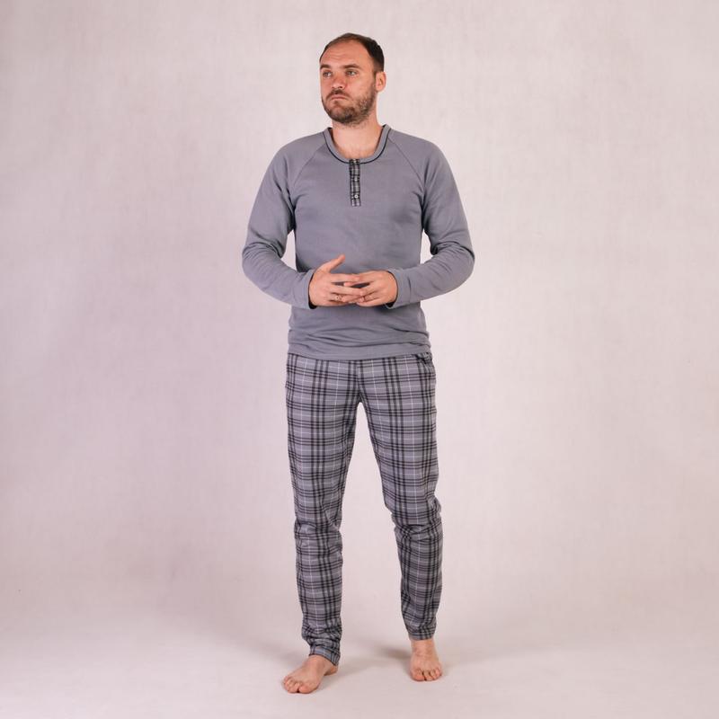 Мужская теплая пижама теплая, серая, в клетку 1678