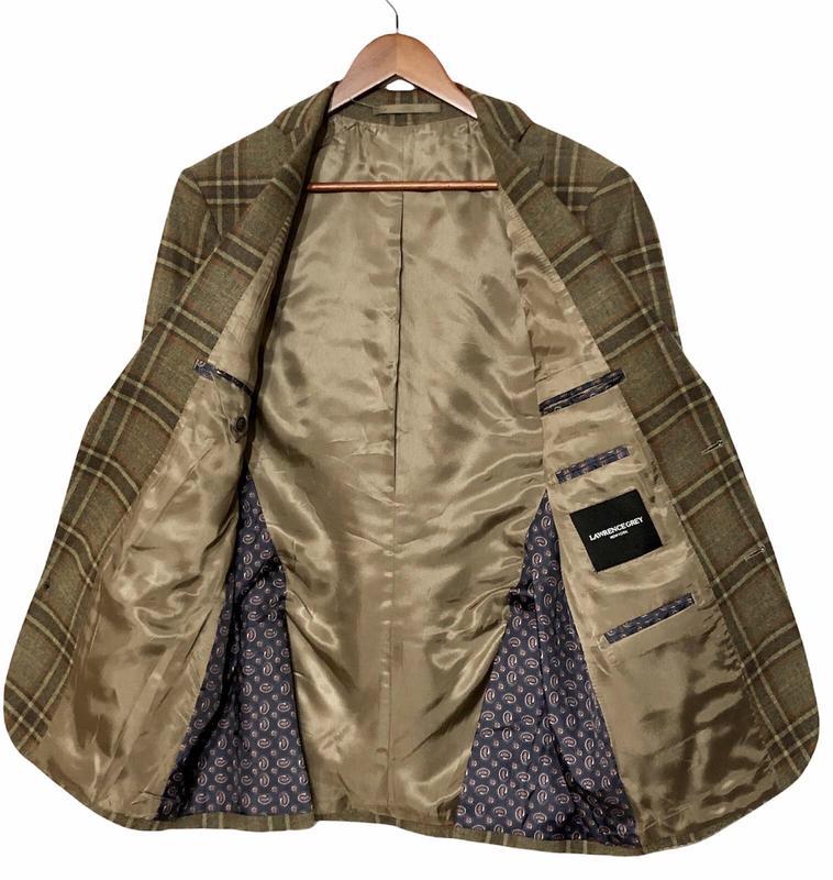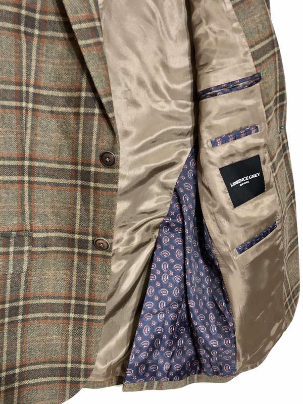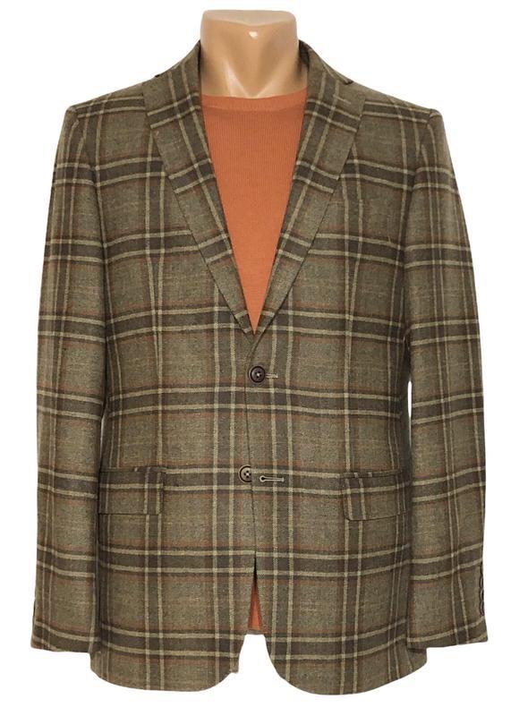 Пиджак мужской Lawrence Grey 46 размер шерстяной , стильный красивый пиджак темно оливкового цвета в элегантную крупную клетку с экстравагантной подкладкой!)