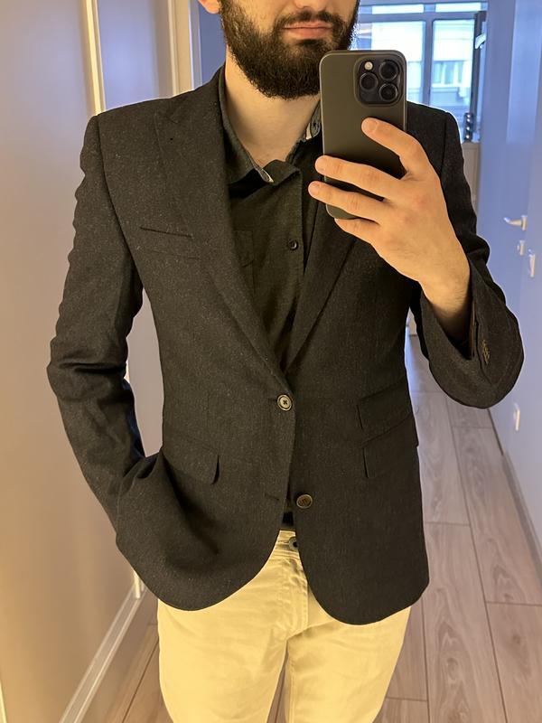 Чоловічий темно синій чорний класичний кежуал шерстяний піджак NextСтан новогоРозмір - М, заміри по запитуЦіна - 350 грн