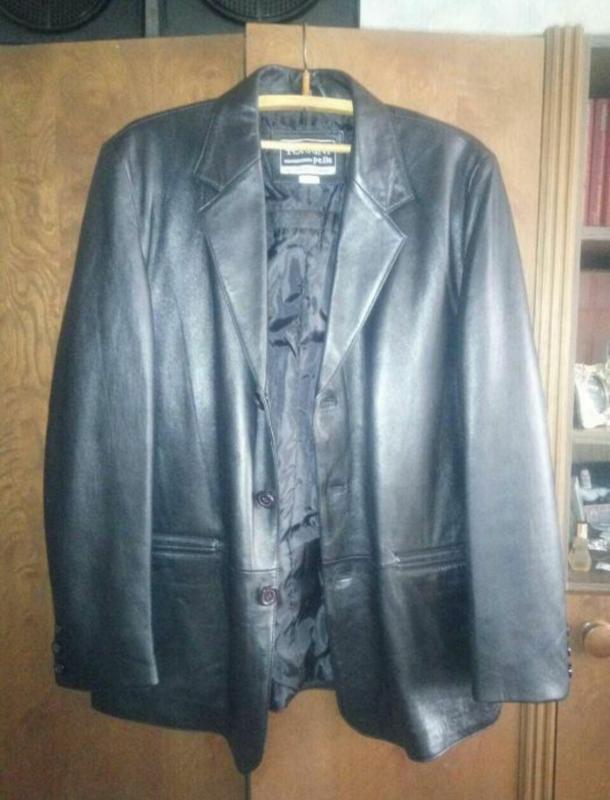 Кожаный пиджак очень хорошего качества. Не ношен. Плечи 49, рукав 67, ширина 62, длина 78. Есть нюанс: разошлась по шву подкладка, видно на фото. Поэтому снижена цена.