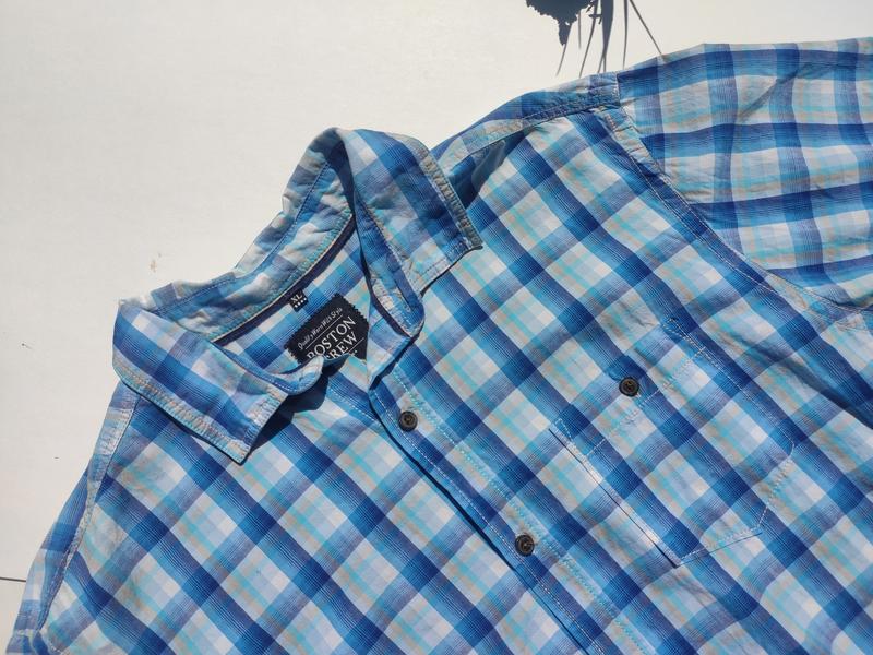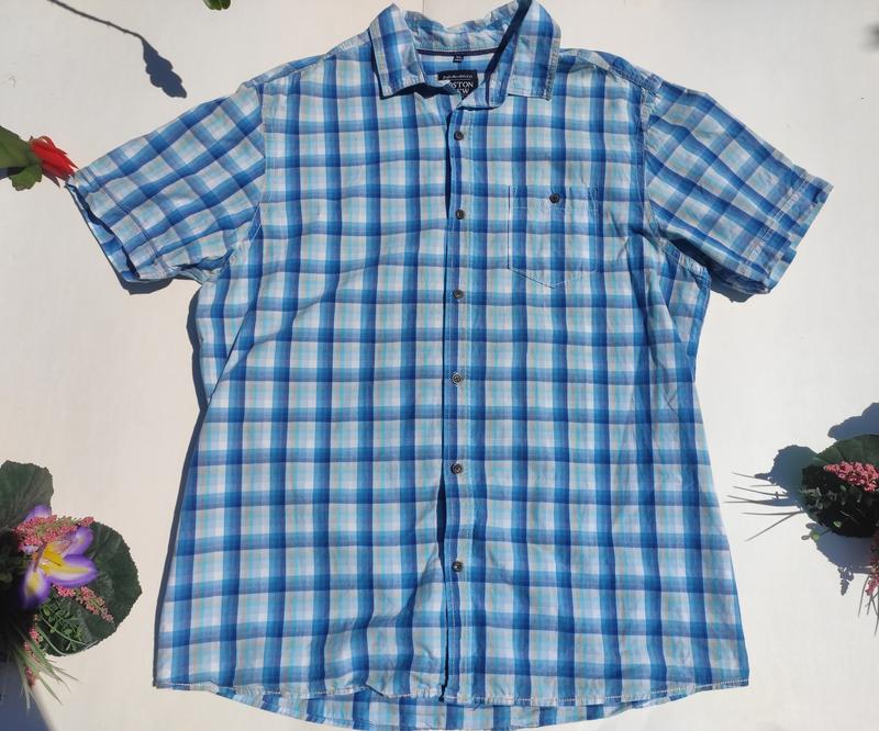 Мужская рубашка тенниска в клетку Размер xl, по замерам идет на L. Ткань 100% коттон. Состояние: идеальный. Замеры в см:Длина 80 смПлечи 50смРукав 24 смШирина в грудях 62см Талии 60смНиз 62 смВоротник 48 см Код я-200 м