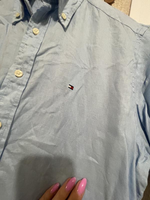 Блакитна лляна теніска сорочка tommy hilfiger 🛍️1+1=3🛍️
