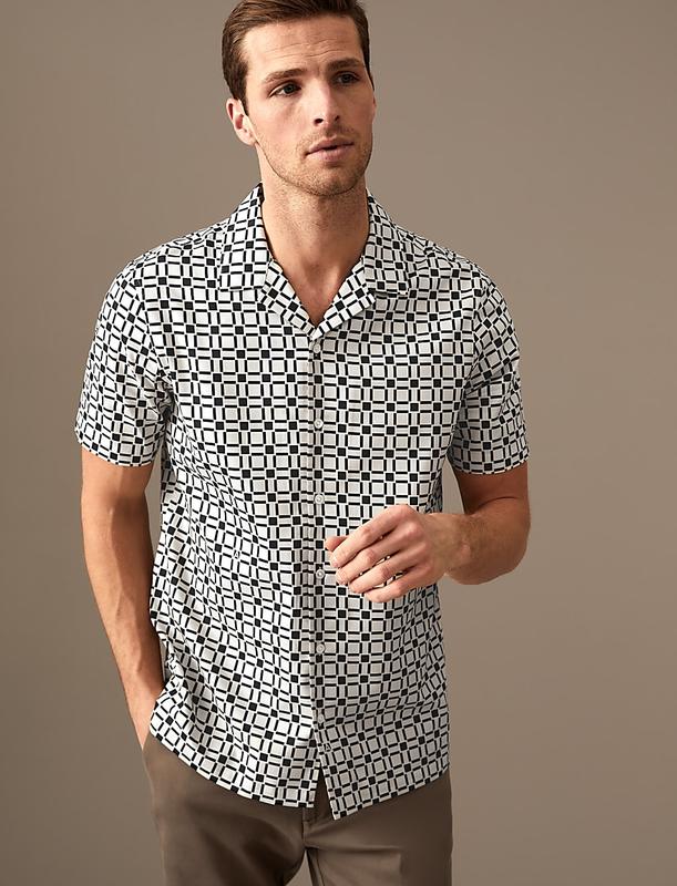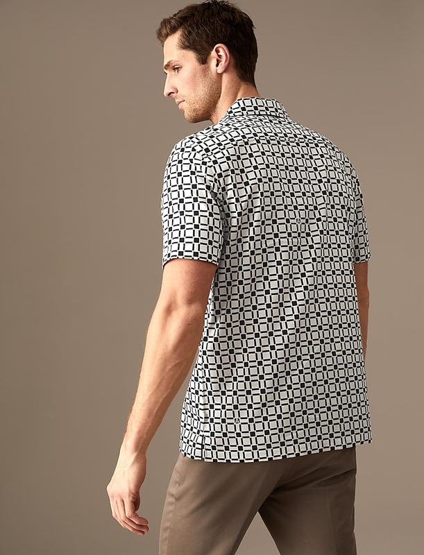 Почувствуйте ретро-атмосферу, надев эту богатую хлопком геометрическую рубашку из нашей коллекции Autograph. Модель с короткими рукавами имеет стандартный крой и классический воротник-стойку. Складки разглаживаются при быстром нажатии благодаря отделке easy-iron. Autograph: первоклассные инвестиционные изделия с современным кроем и изысканными штрихами.