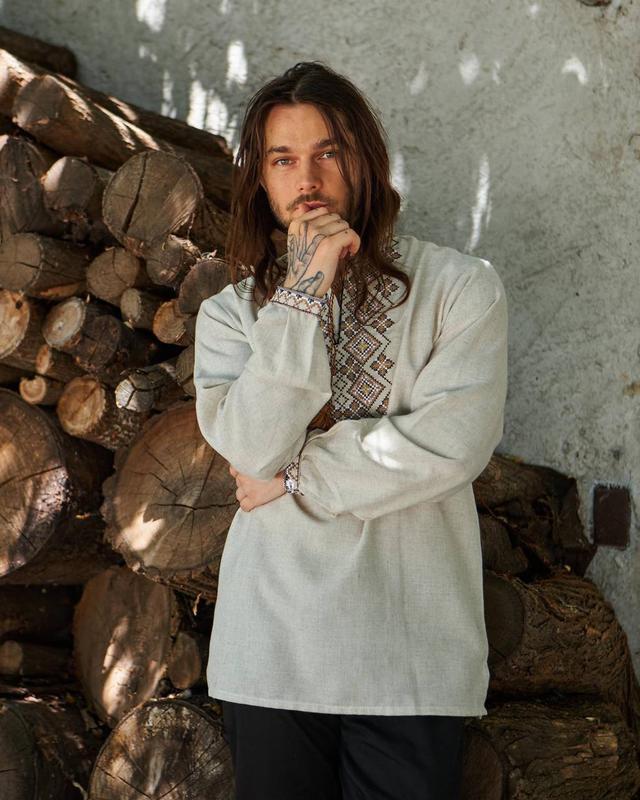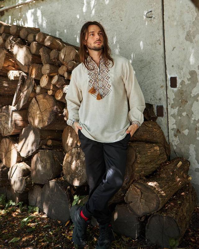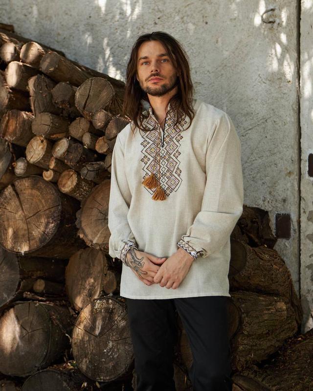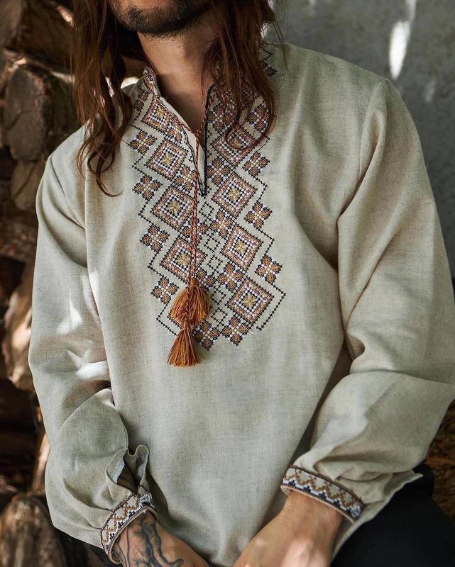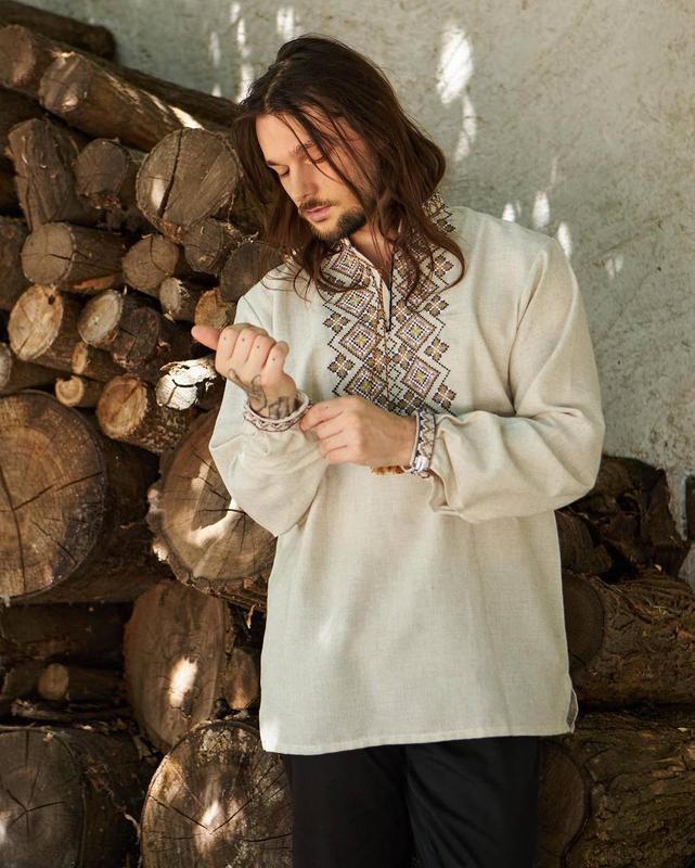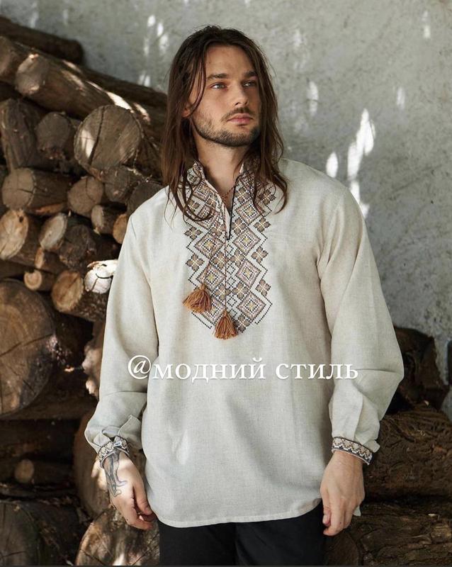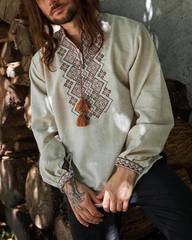 Изготовление 1-5 дней. Мужская вышиванка Размеры: 36, 38, 40, 42, 44, 46, 48, 50, 52, 54, 56, 58 (замеры на последнем фото)Цвет: светло-бежевыйТканина: льон