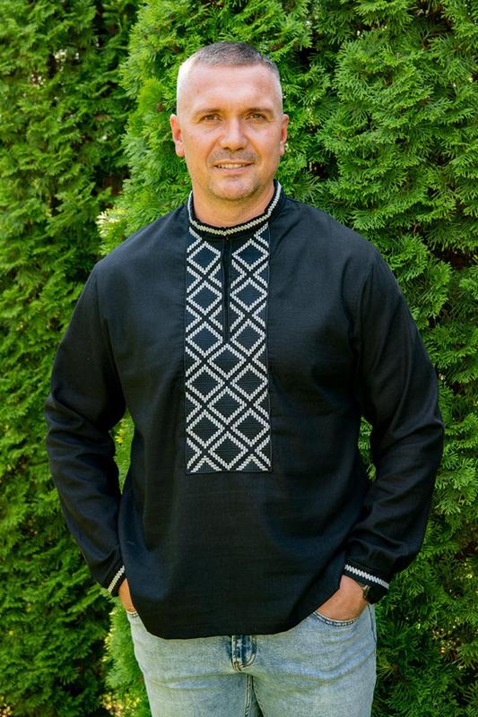 Мужская вышиванка черная на льне