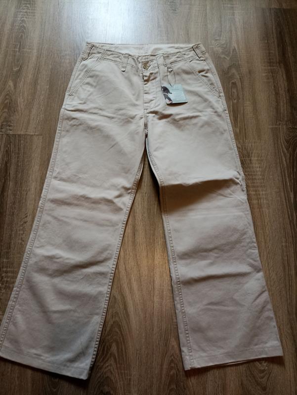 Оригинальный товар известного мирового бренда, очень плотный качественный коттон. Длина 108 см, глубина посадки 30 см, полуобхват талии 46 см, бедер 57 см, ширина штанины сверху 33 см.