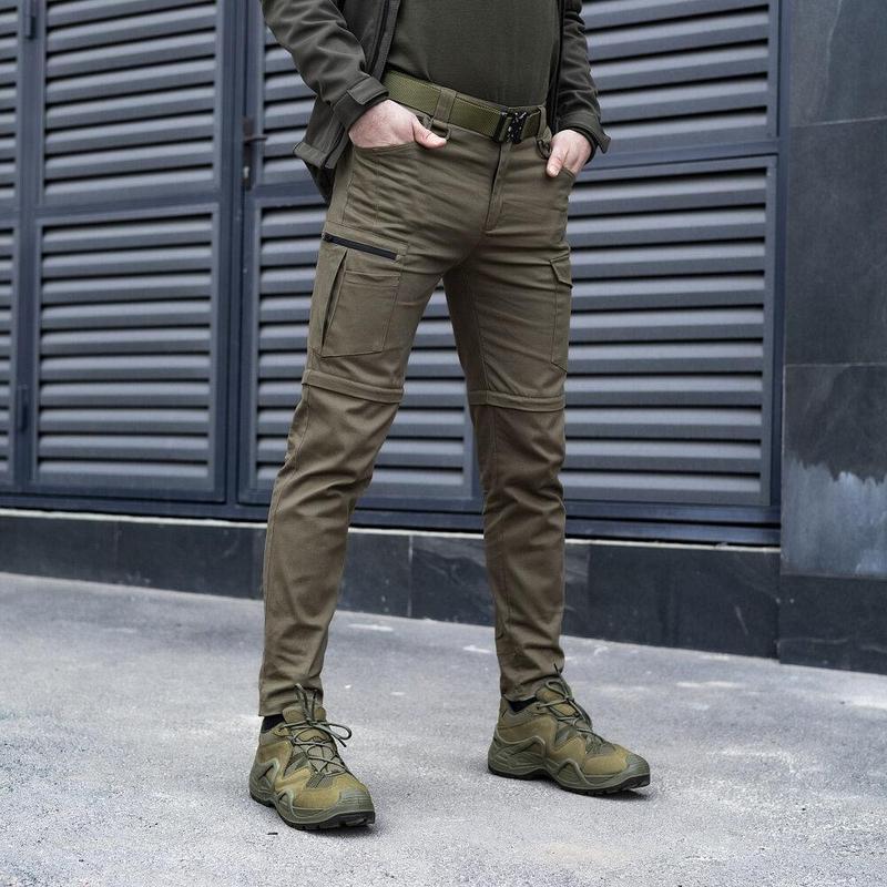 Мужские брюки-карго Pobedov “Transformer” – комфорт и функциональность в одном изделии. Изготовленные из премиум-котона с добавлением стрейча, эти брюки обеспечивают идеальное сочетание мягкости, удобства и гибкости и гарантируют вам максимальное удобство и свободу движений в любой ситуации. Особенностью этих брюк является возможность легко превратить их в шорты с помощью разъемной молнии в области колена. Это делает их идеальным выбором для различных погодных условий и сценариев использования.