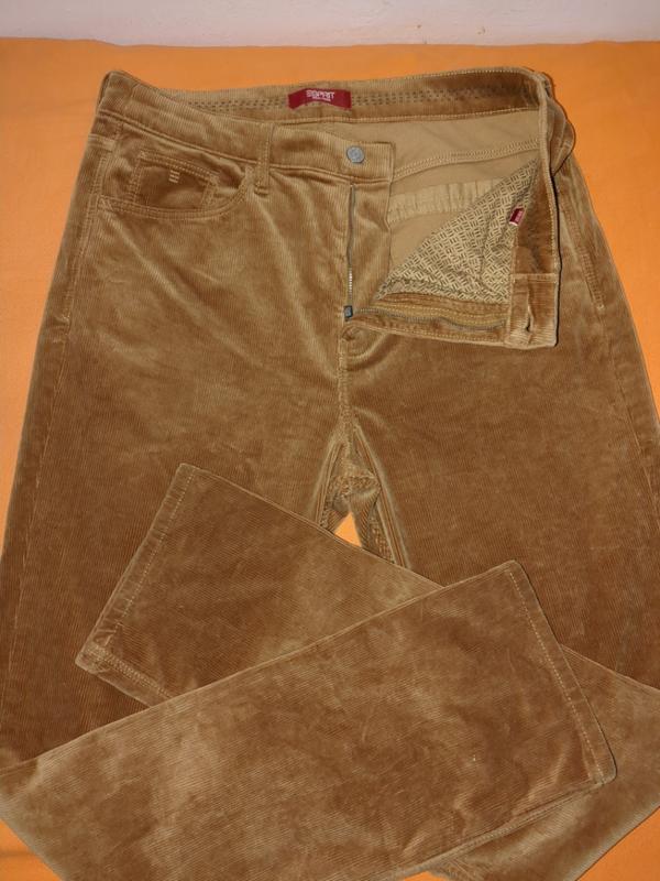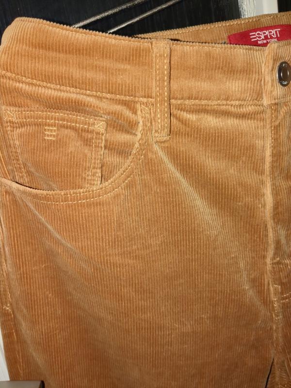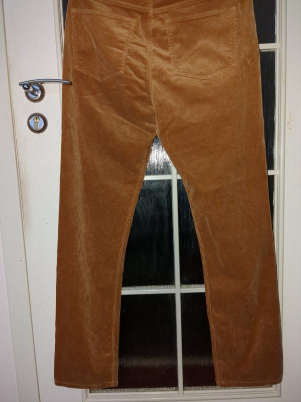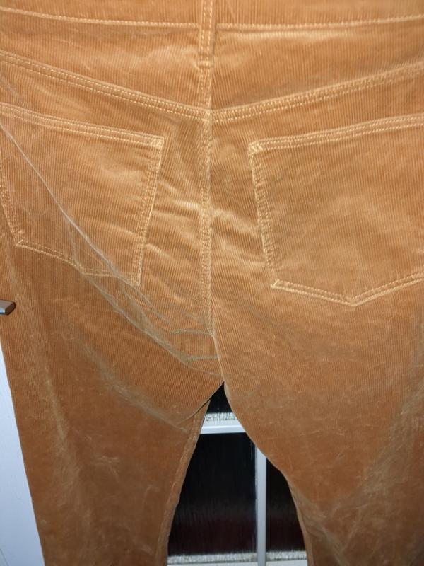 красивого персикового цвета вельвет. ткань плотная и прочная, состоит на 98 процентов из хлопка, остальное эластан. материал мягкий и приятный на ощупь, напоминает велюр. необычный цвет, именитый бренд, нарядно и стильно смотрятся. вещь явно заслуживает внимания. размер указан 33х32, замеры см. пот 42, поб 57, ширина штанины 31, длина от пояса до низа 110, ширина на выходе 18.