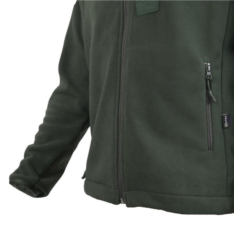 Ткань состоит из двух полотен тонкого флиса, что вместе дает обильную плотность и равноценную отделку с двух сторон полотна, обе имеют невысокий, густой и очень мягкий ворс. Технология: односторонний антипилинг плотностью 270г/м2 (100% полиэстер), обеспечивающий идеальный баланс между теплом и комфортом, позволяя вашей коже свободно дышать при активных нагрузках. Дополнительные вставки на плечах, воротнике и локтях из матовой плащевой ткани с двойным плетением (Double Weav) придают ей водоотталкивающие свойства, ведь 100% полиэстер с эффектом Mechanical Stretch в 4 стороны - обеспечивает свободу движений гарантирует износостойкость и устойчивость к разрыву, для оптимальной терморегуляции при интенсивных физических нагрузках. Кофта застегивается на спиральную молнию под которой находится ветрозащитная планка, которая является непродуваемой и устойчивой в обращении, для дополнительного комфорта на бегунках присутствуют пуллеры. Флиска имеет два боковых кармана, которые позволяют рационально разместить все необходимые вещи. Векро панели предназначены для крепления патчей и идентификаторов вырезанные по технологии Laser Cut, это означает, что велкро не будут бахрома и эстетический вид. Нарукавные велкро панели дополнительно имеют отсеки под канцелярские принадлежности (ручки, маркеры и т.д.). Воротник-стойка двойной (флис+пластовка с двойным плетением «Double Weav») обеспечивает надежную защиту от ветра и других погодных условий. Манжеты рукавов оснащены резинкой Foldover, предотвращающей попадание холодного воздуха внутрь. Низ изделия оснащен внутренним эластичным шнуром с фиксатором от известного Японского производителя фурнитуры WJ для индивидуальной регулировки по объему. Анатомический крой не стесняет движений и обеспечивает максимальный комфорт. Для прочности изделие прошит армированной нитью.