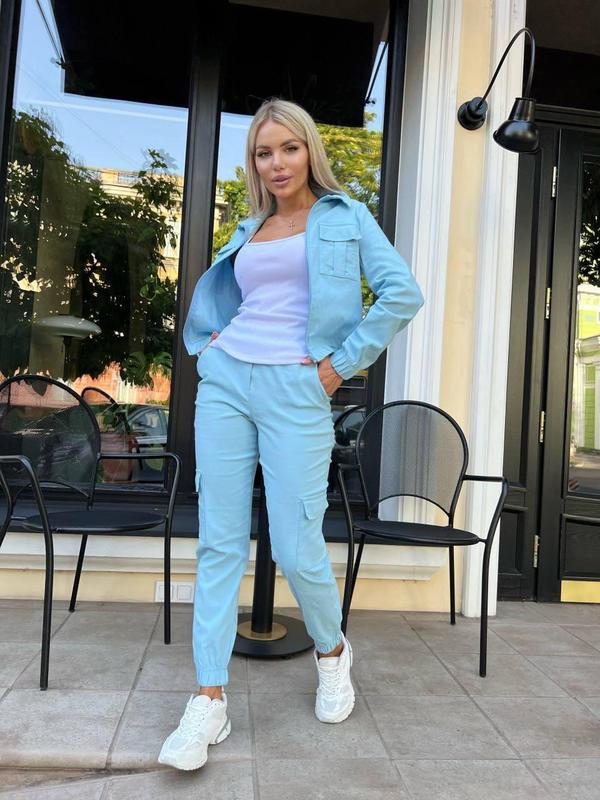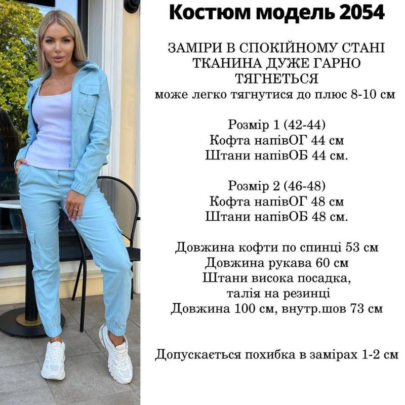 Костюм Модель 2054 Размеры: 42-44, 46-48 Ткань джинс-бенгалин (хорошо тянется) Цвета: голубой, хаки, черный, красный