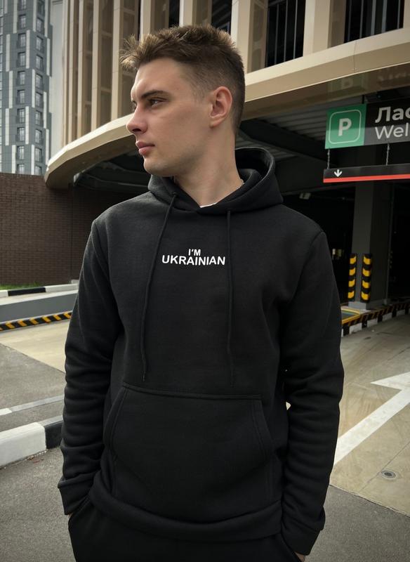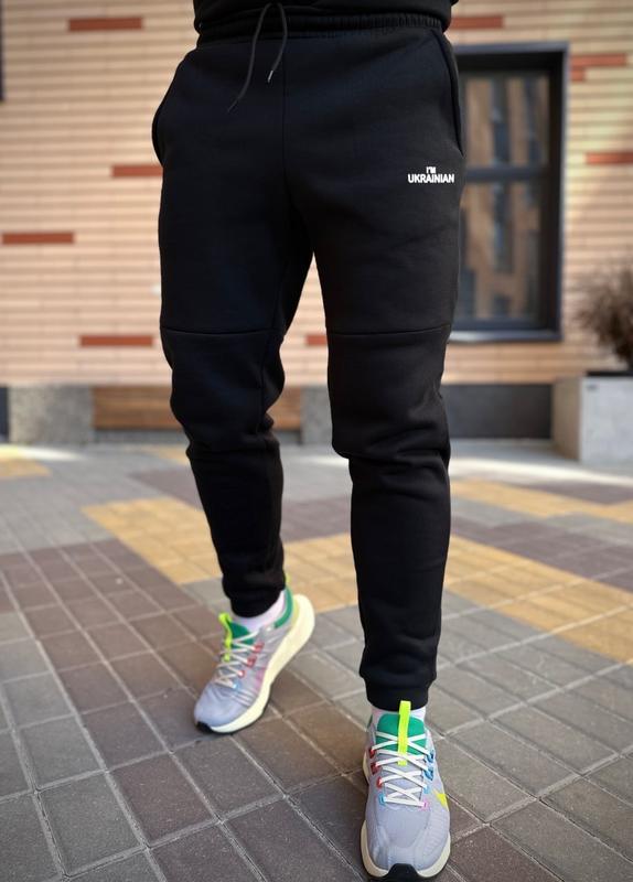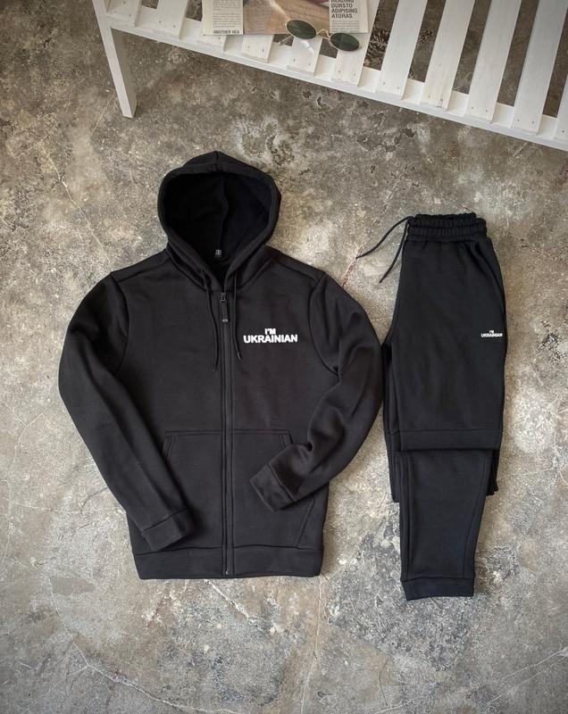 Зимний спортивный костюм I'm Ukrainian с начесом черная кофта на молнии или худи + черные штаны
