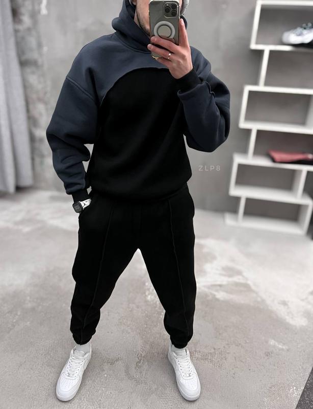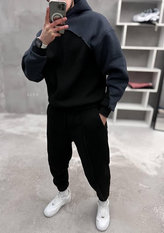 Черно-синий спортивный костюм мужской оверсайз на флисе
