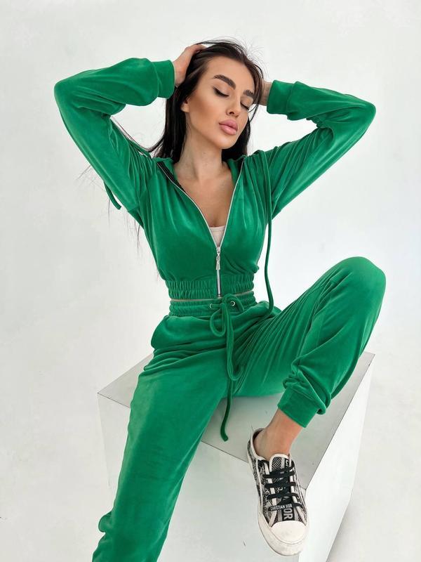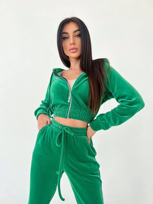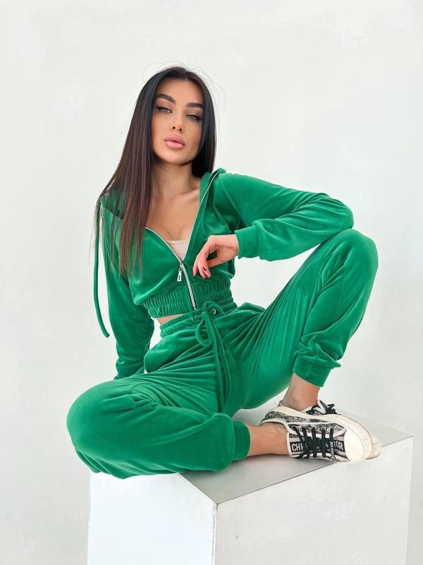 Кофта на молнии, брюки на высокой посадке, с карманами, внизу манжет, удобный