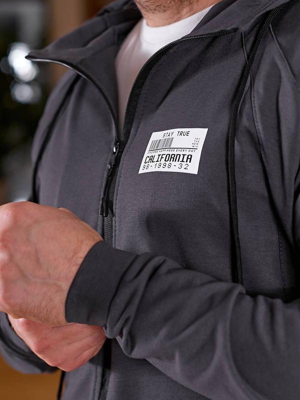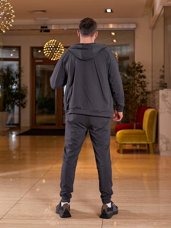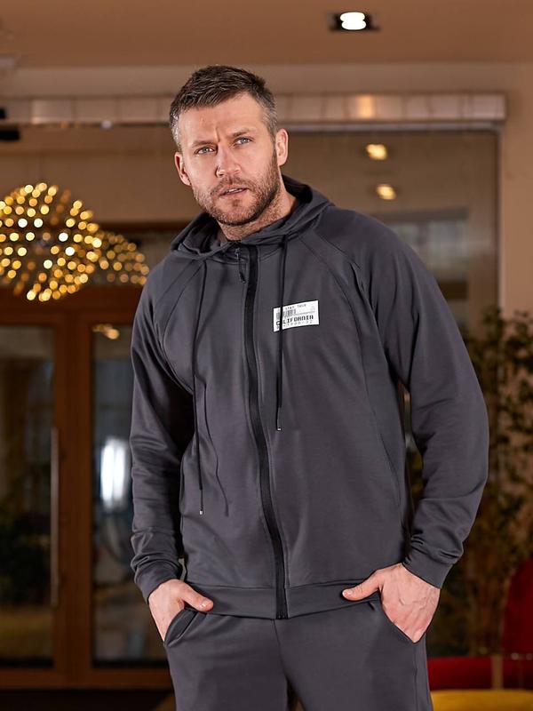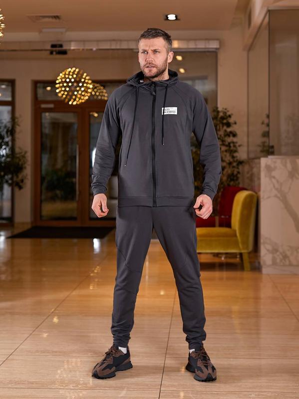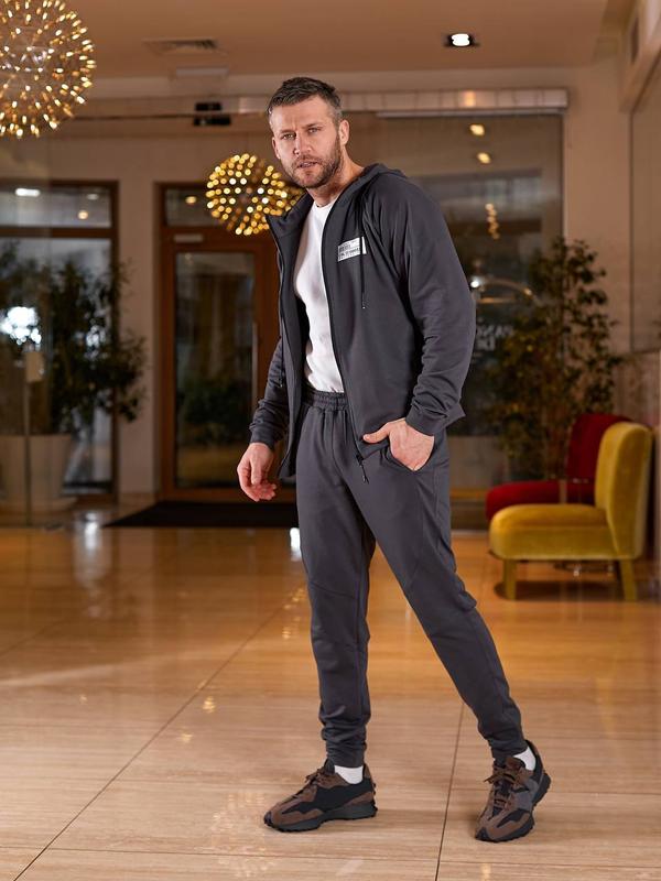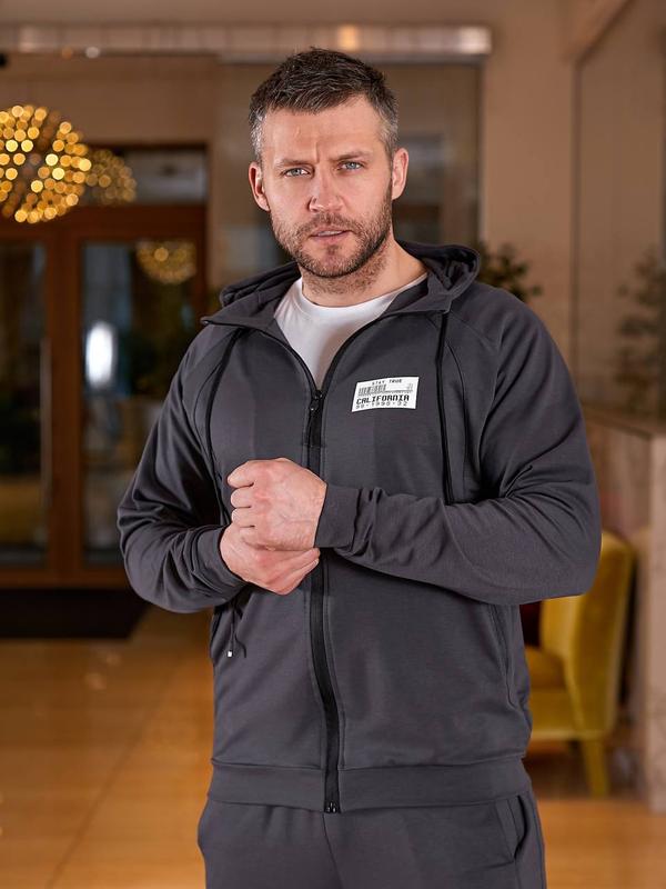 Костюм чоловічий осінній весняний графіт спортивний штани на ризинці з карманами кофта на блискавці з капюшоном двонитка батал