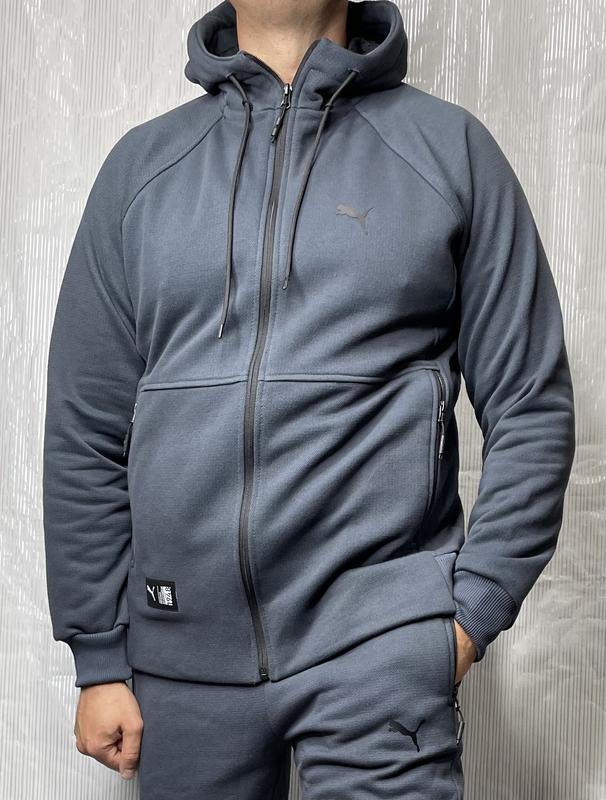Костюм спортивный мужской зимний из ткани лакоста коттон на флисе. Кофта с капюшоном и двумя карманами на молнии. Брюки на манжетах с двумя карманами на молнии.