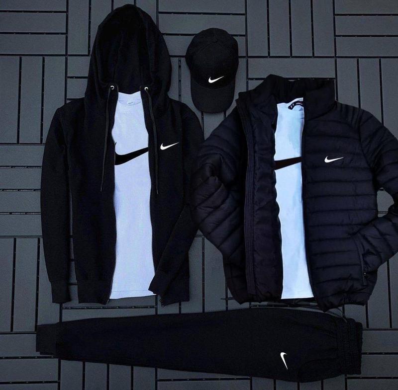 Мужской спортивный костюм Nike 6в1: худи на молнии + штаны + футболка + кепка + куртка
