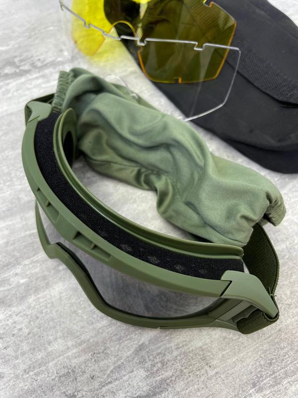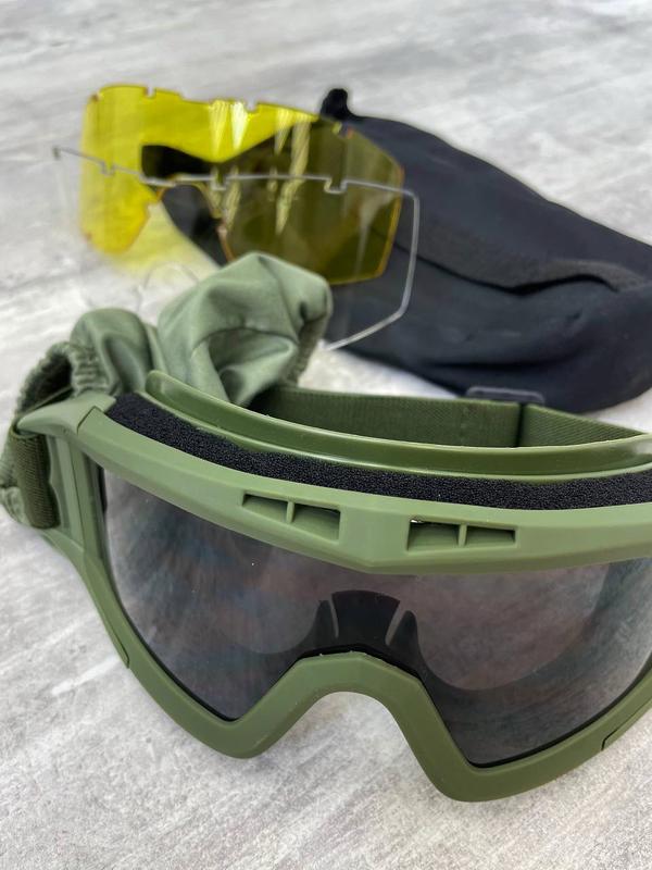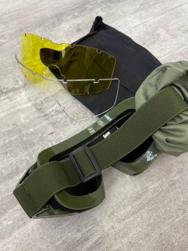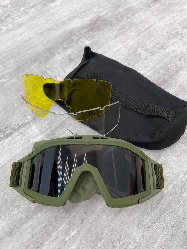 Можна використовувати за будь-якої погоди. Лінзи мають спеціальне покриття, яке забезпечує антитуманний захист, не пітніють, захист від дрібних подряпин. Захищають від осколків, бруду, землі. Мають широкий кут зору завдяки вигнутій формі. Регульований ремінь дозволяє зручно кріпиться як на голову, так і на шолом. При використанні зверху шолома рекомендується використовувати чохол ( входить до комплекту)