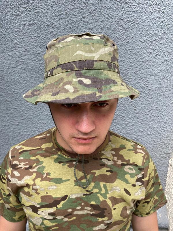 Тактическая панама в мультикам камуфляже с удобным фиксатором, который