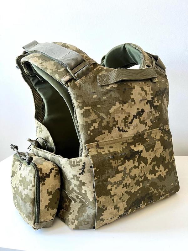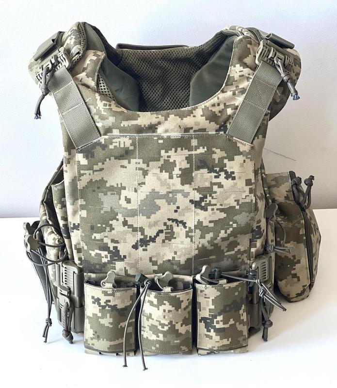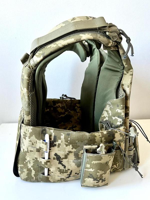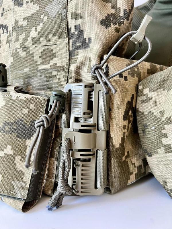 можно закрепить молле совместимое снаряжение и ID-идентификаторы. Наверху