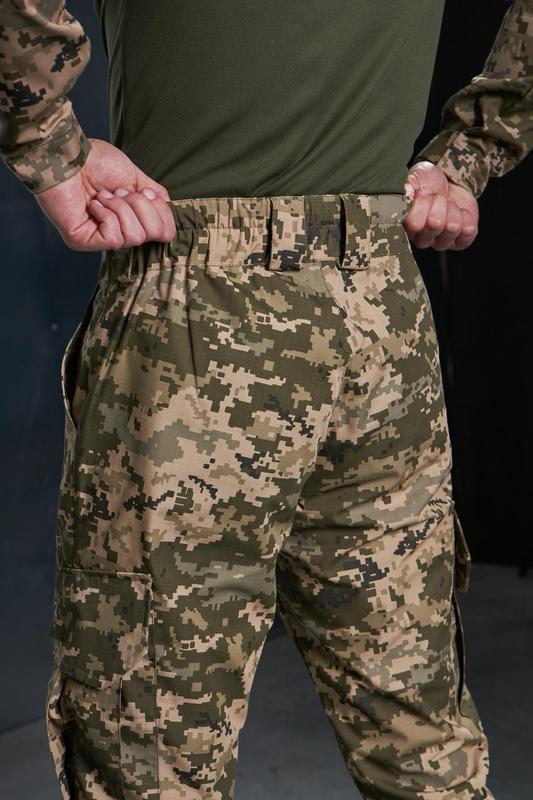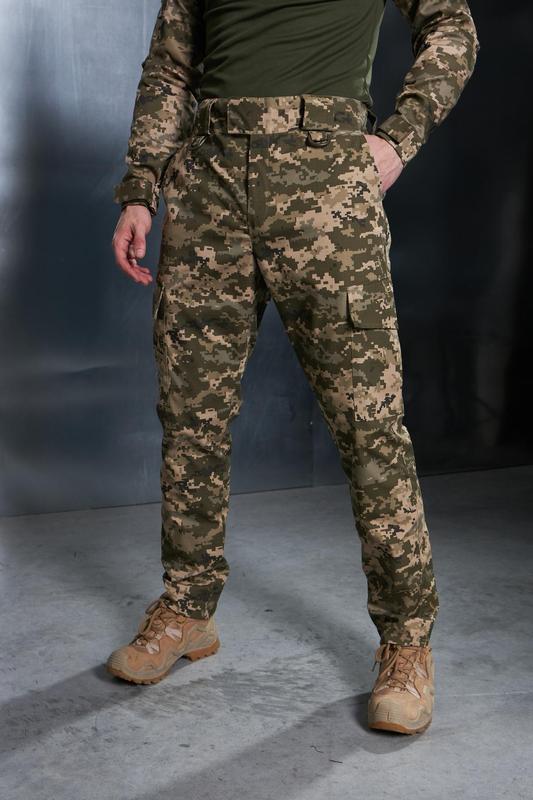 Материал: рип стоп,- В изделии 4 кармана (2 прорезных и 2 боковых на липучках),- Застегивается с помощью большой липучки. Есть ширинка на молнии,- На поясе есть шлейки под ремень,- Внизу штаны затягиваются с помощью липучки,