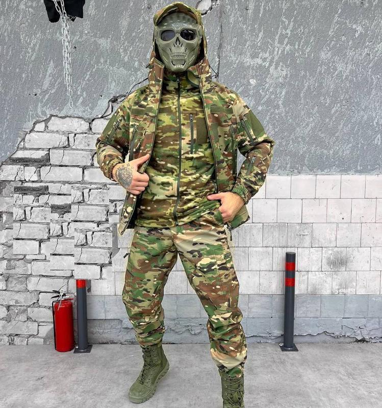 Тактический демисезонный комплект softshell 4 в 1 (куртка, штаны, кофта, бейсболка) мульти...