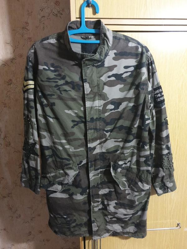 Убойная куртка - ветровка, в стиле милитари, AMISU, в идеальном состоянии. Плечи 47 см., длина от шва воротника, посередине спины, 85 см., ширина груди под мышками 50 см., длина внешнего шва рукава 55 см.. Торг уместен .Смотрите другие мои объявления. Пишите - договоримся.