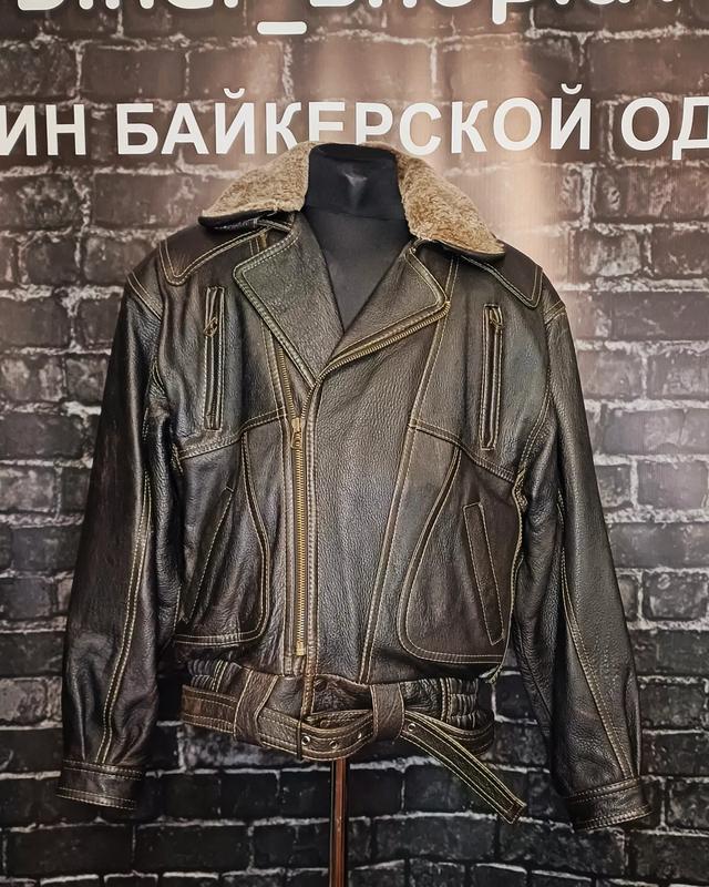 ЭКСКЛЮЗИВНАЯ БОЛЬШАЯ КОЖАНАЯ КУРТКА КОСУХА ❗️НОВАЯ ❗️ УТЕПЛЁННАЯ☆ WHITE HORSE LEDER☆ Эксклюзивная кожаная КОСУХА ❗️НОВАЯ ❗️ WHITE HORSE LEDER made in Italy size L ‼️РАЗМЕР БОЛЬШОЙ лучше ориентироваться на замеры ниже в описании ‼️ Косуха утеплена съёмной МЕХОВОЙ( мех натуральный стриженый кролик) ПОДСТЁЖКОЙ ( присоединяется к куртке молнией) , меховый съёмный воротник ОВЧИНА ( воротник присоединяется к куртке с помощью молнии). Цвет темно коричневый ( шоколад) . Кожа плотная ,мягкая ,ТЯЖЁЛАЯ, вычинка экстра класса ( БУЙВОЛ) . Пошив классический как у всех КОСУХ, косая металлическая массивная молния, рукава зауживаются на кнопки, по низу куртки с каждого бока кожаная резинка( для идеального облегания по талии), регулировка ширины талии кожаный съёмный ремень на металлической пряжке, дополнительно низ куртки фиксируется на 2 вертикальные кнопки. Куртка декорирована бежевыми внешними швами ( придаёт особый стиль и вид ). Подкладка стёганая 100% polyester, утеплена тонким слоем синтепона. В куртке 2 кармана внутренних ( 1 на молнии, 1 прорезной) . Наружных 4 кармана ( 2 кармана нагрудных на молнии, 2 кармана нижних боковых прорезных). Замерная таблица на последнем фото . ЗАМЕРЫ : 1) плечи 55 см 2) полуобьем груди 65 см 3) длина рукава 66 см 4) длина куртки по спине по середине 70см Экслюзивная куртка эффектно и стильно смотрится подойдёт как для езды на мотоцикле так и в повседневной жизни. Дополнительные фото и вопросы в личку. В Запорожье личная встреча на примерку. Отправка НОВОЙ ПОЧТОЙ по предоплате 200 гривен. Смотрите все мои объявления есть много интересных вещей связанных с мото тематикой. Ассортимент постоянно обновляется. Постоянным клиентам скидки 💰