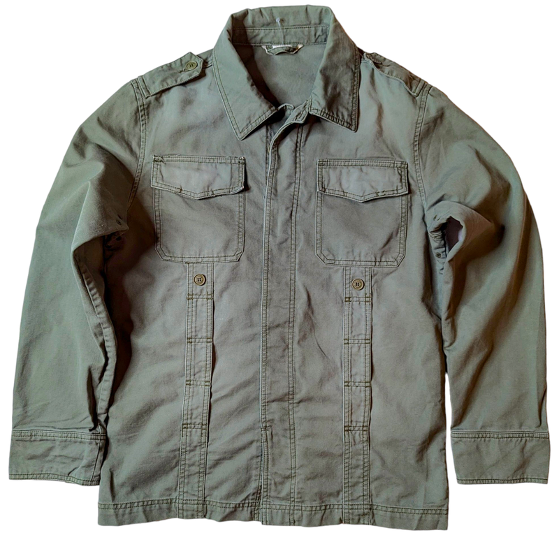 В винтажном стиле,washed Куртка в стиле "washed" (буквально "вымытый") — это куртка с эффектом изношенности, создаваемым специальной обработкой ткани. Такой стиль придает изделию винтажный или потертый вид, словно его носили и стирали много раз. Обычно для достижения этого эффекта ткань обрабатывается специальными химическими растворами или механическими способами, такими как пескоструйная обработка или стирка с камнями. Состояние очень хорошее Размер Л По спине длина 72,5 см Плечи 47,5 см Подмышки 55 см Длина рукава от ворота 80 см От плеча 64,5 см
