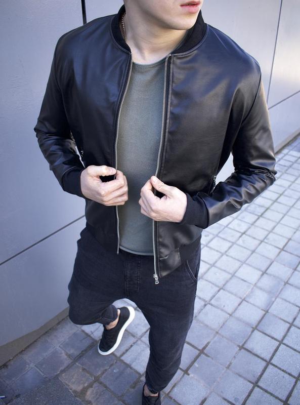 Куртка из эко кожи, бомбер на весну, качественная курточка мужская, кожаная