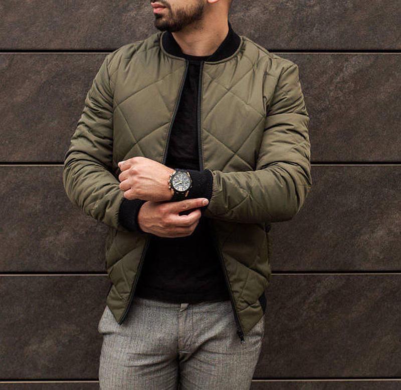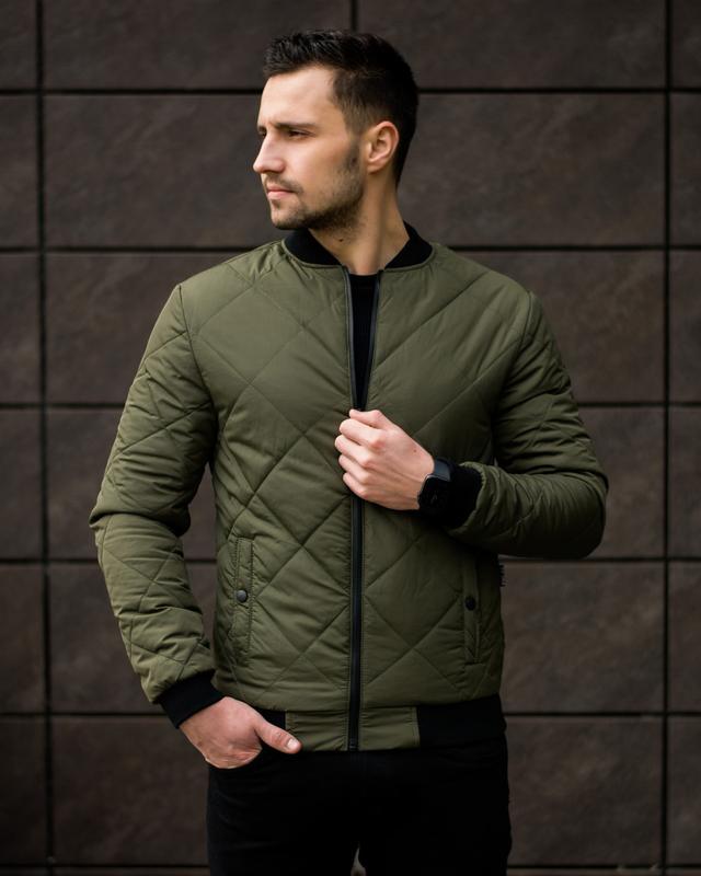 Чоловічий бомбер ромбик утеплений осіння куртка ділова