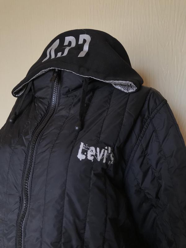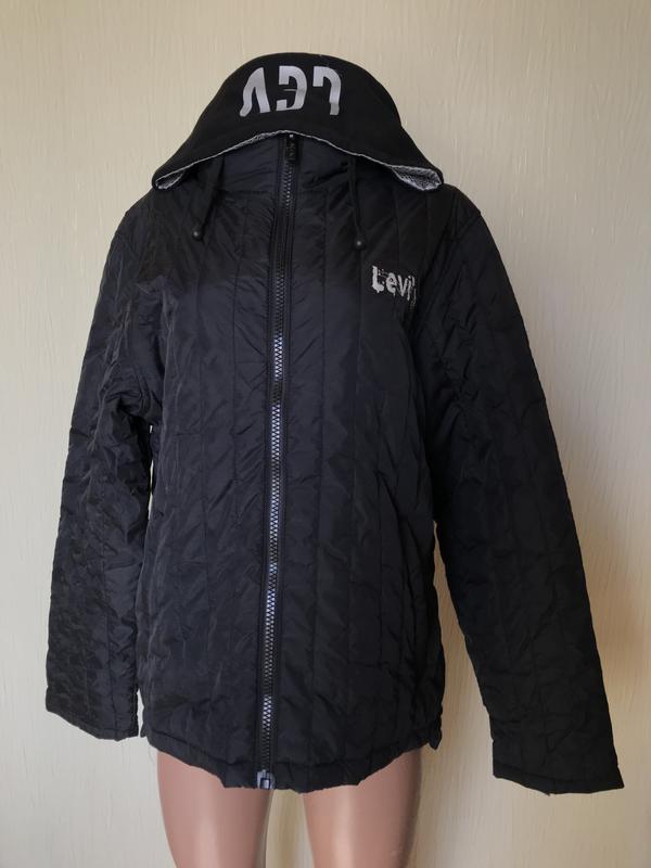 Трикотажный капюшон, снимается (на молнии). На рукавах замочки, карманы тоже на замочках. Материал: балоневая стеганная плащевка. Утеплитель — тонкий холлофайбер.