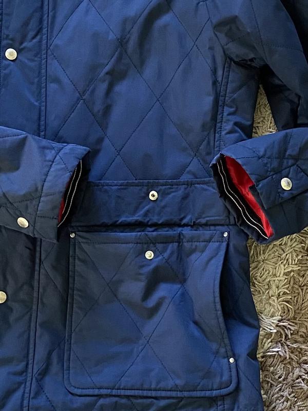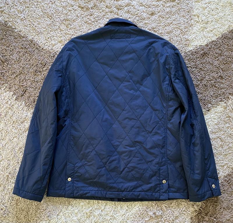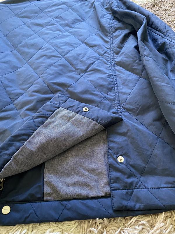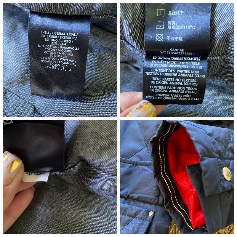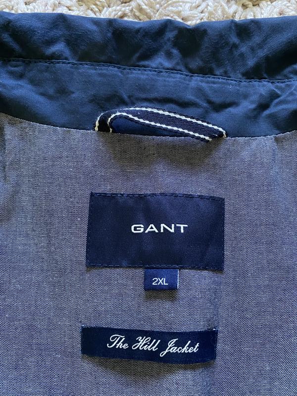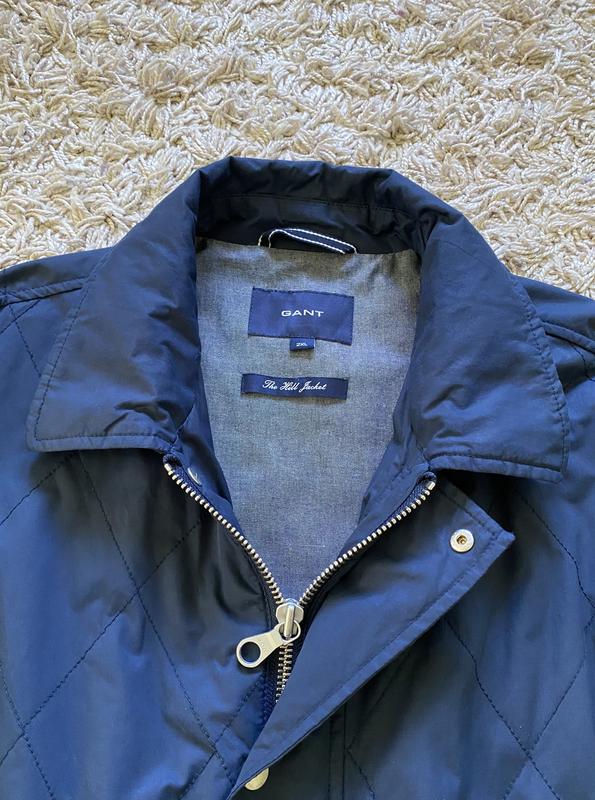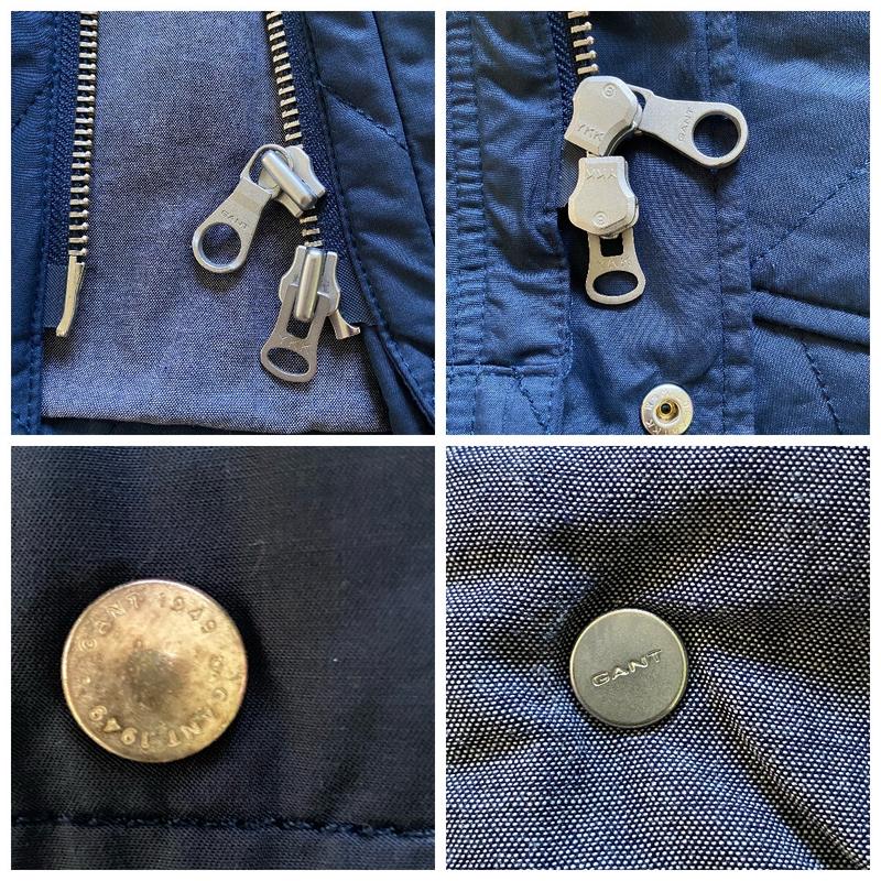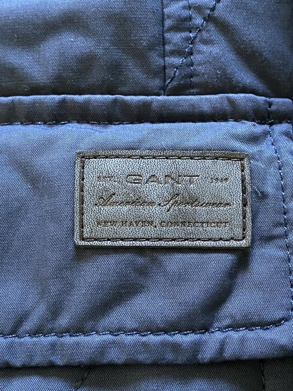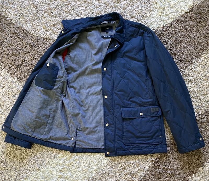 Стильная стёганная демисезонная куртка известного бренда Gant.оригинал.состояние идеальное.вся фурнитура родная.очень качественная.есть момент-немного есть потёртости на кнопках.очень удобная .немного на пропитке.размер указан 2XL.но смотрите на замеры:плечи-53см,под мышки-65см,талия-61см,ширина по низу-64см,рукав-71см,длинна по спинке-81см.