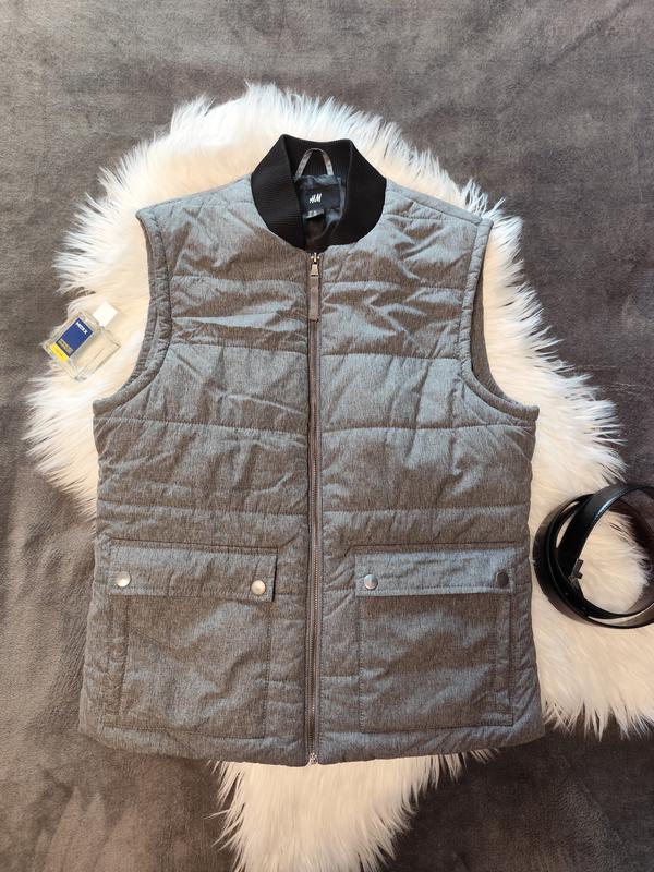 Мужская теплая жилетка в идеальном состоянии.Материал водоотталкивающий,качественный не шуршит. Замеры на фото