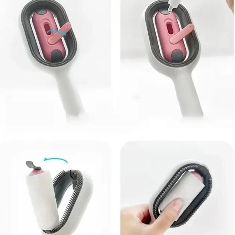 Щетка 4 в 1 для вычесывания шерсти у домашних животных. Прекрасно подходит как для кошек, так и для собак. Щетка имеет 2 стороны, одна для вычесывания шерсти у животных с массирующими мягкими выпуклостями, вторая для уборки шерсти из мебели и одежды, гладкая. Изготовлен из высококачественного ABS пластика и силикона. Благодаря мягкому силиконовому слою при вычесании вы одновременно делаете и приятный массаж своему любимцу. Щетка имеет крепеж для влажной салфетки, которая размещается внутри зубцов. Использование влажной салфетки позволяет более эффективно собирать лишнюю шерсть.