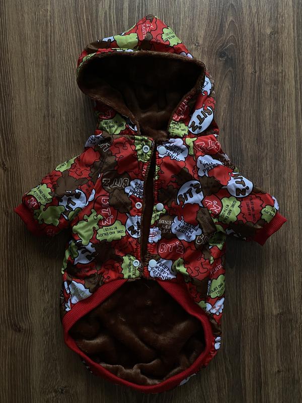 Замеры: длина по спинке - 43,5 см, полу обхват груди - 56 см, полу обхват шеи - 38 см.