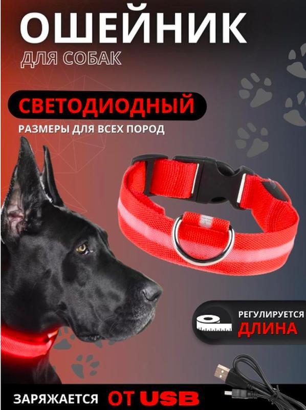 Ошейник оснащенный светоотражающим элементом и светодиодом, которые делают его