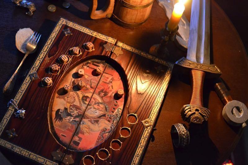 Настольная игра с первой части Ведьмака. Прерасний подарок для ценителей. Выполнен из массива сосны и фанеры. С помощью техник: обжиг,брашування,декупаж,вживление картинок. Заморены под красное дерево,акриловые краски,акриловый лак,металлическая фурнитура. Размер доски 40*17см в закрытом виде и 34,5*40см в открытом. Срок изготовления 7-10 дней. Товар под заказ