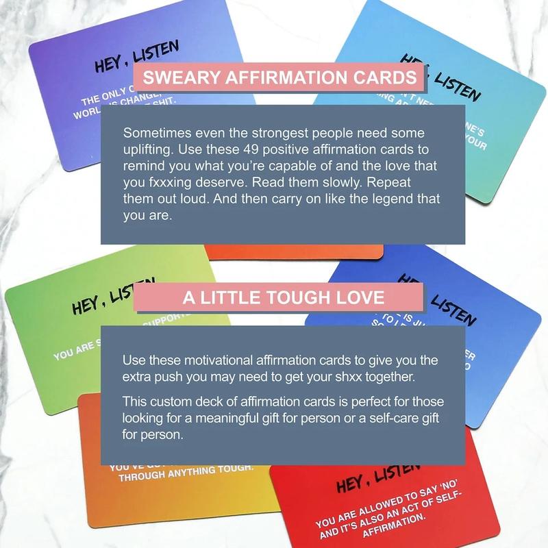 - Смех и мотивация: Карточки полны юмора и нецензурной лексики, что делает процесс самоутверждения еще более забавным.