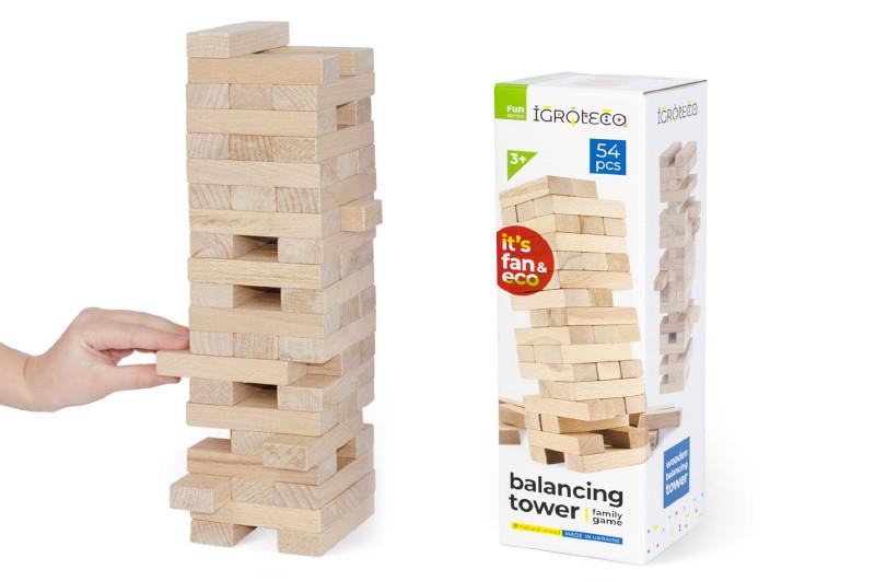 Дерев'яна настільна гра вежа-балансир дженга 54 елементи 900088 igroteco