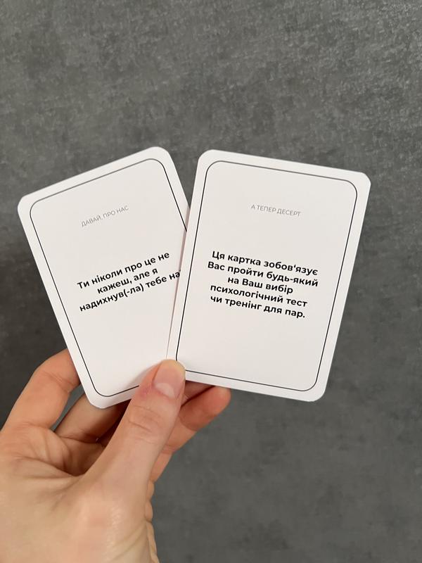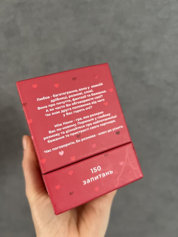 Настольная игра для пара включает 150 глубоких вопросов, которые помогут погрузиться в ваши отношения. Вы подеетесь со своей второй половинкой мечтами и планами, сексуальными фантазиями и страхами. А также, забавными воспоминаниями и надеждами.