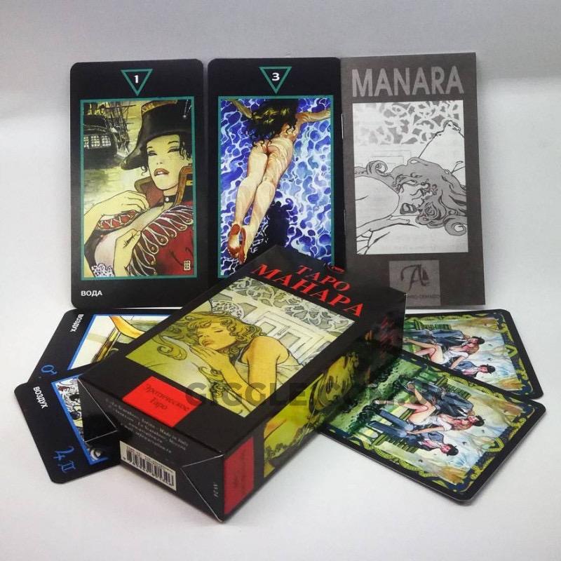 Таро Манара – колода карт Таро, созданная итальянским художником Мило Манара. Карты имеют эротический смысл и используются для гадания на любовь и раскрытие отношений между людьми. Интуитивно понятная, красочная колода для гадания ведает творческую обстановку, к этим картам нельзя подходить с жесткими правилами, тогда они будут откровенны и получите ответы на волнующие вас вопросы. Производитель - София Страна производитель - Украина Формат - 66 х 120 мм Язык издания - Русская Тип поверхности бумаги - изображение покрыто лаком Стан - Новый Материал - изготовлены на плотной бумаге 350г/м2 Комплектация - 78 карточек + инструкция