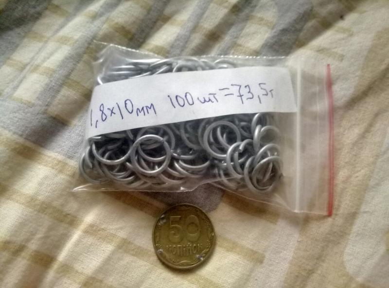 внутренний диметр кольца = 10 ммдиаметр проволоки 1,8ммвес 100 шт = 7,5граммименно из таких изготавливаются основные турнирные кольчуги и изделияа так же цепи.цена за 1 пакетраспродажа остатков.