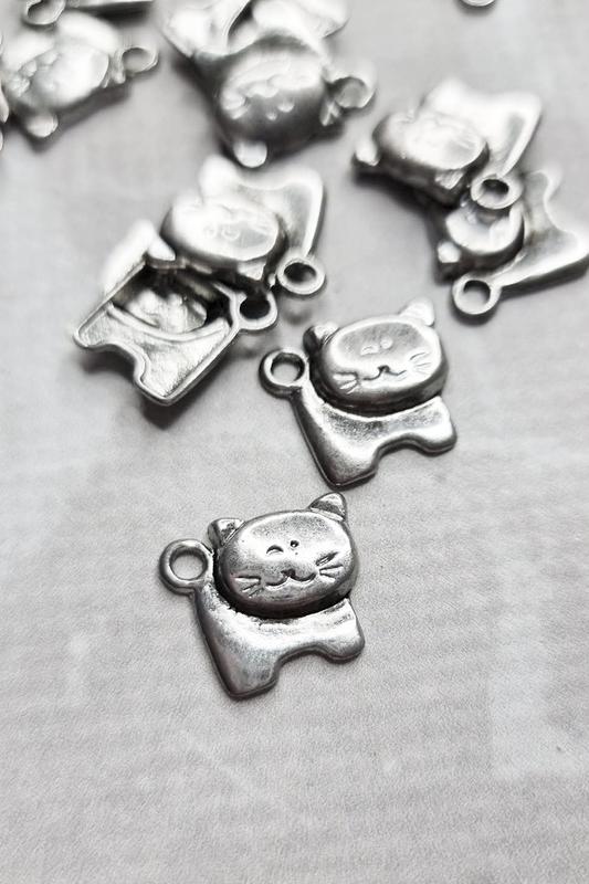 Підвіска котик 039 металева фурнітура, срібло, 2 штуки