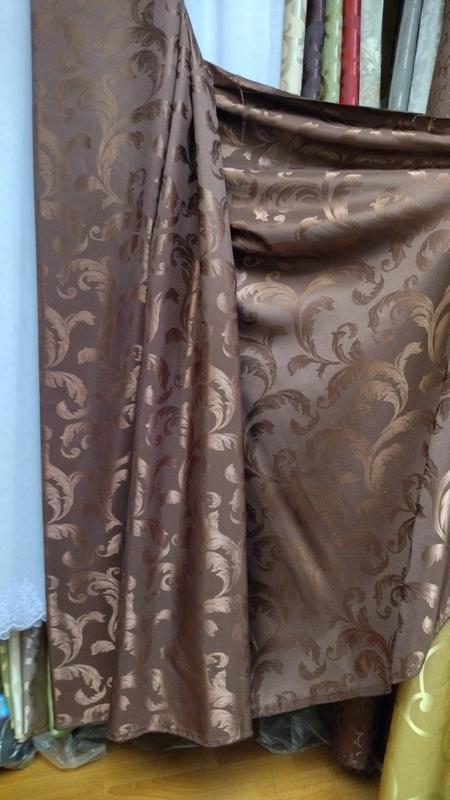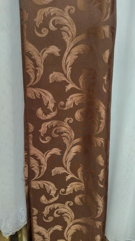Гарної якості, тканина середньої щільності, двух стороння,зносостійка, не вигоряє на сонці. Основа поліестер, сатинового плетіння, джакард.