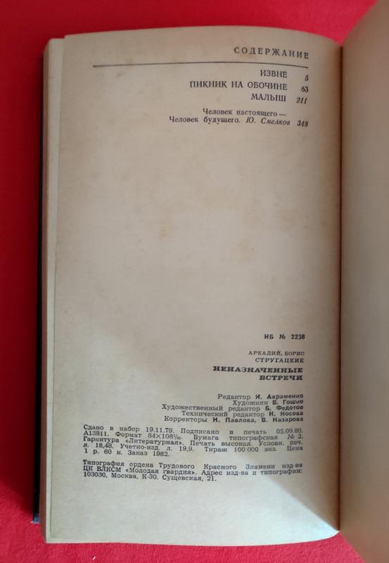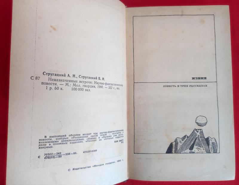 Стругацкий А., Стругацкий Б. Неназначенные встречи: Авторский сборник. / М.: Молодая гвардия, 1980. — (Библиотека советской фантастики). — 352 стр., 100000 экз.
