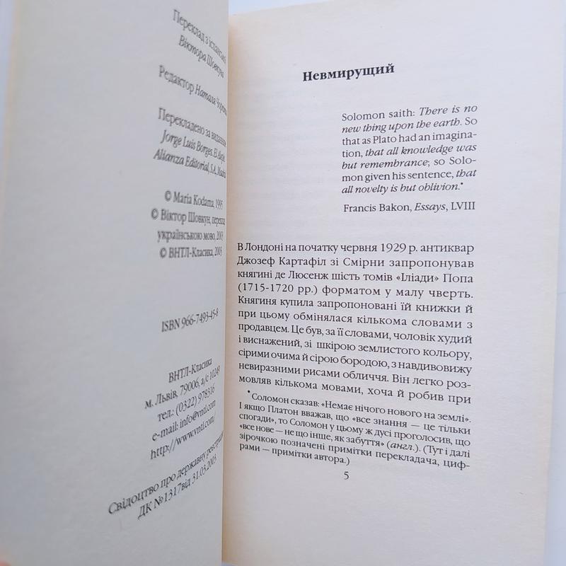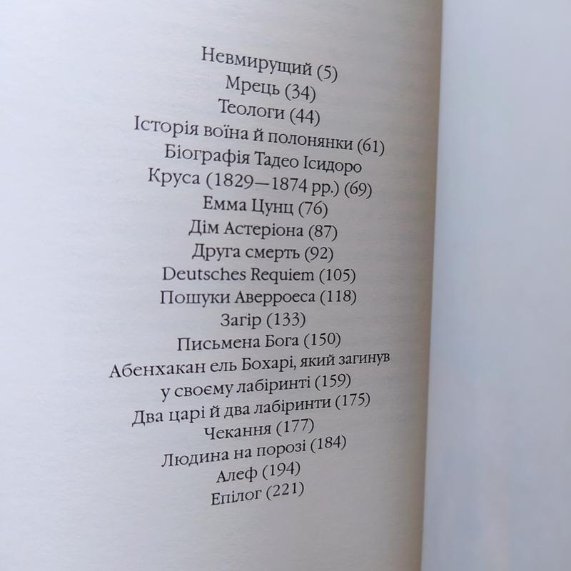 До цього видання повністю увійшла авторська збірка «Алеф», збірка вигаданих історій, яка принесла аргентинському письменнику світову популярність. Хорхе Луїс Борхес – один з найвідоміших літераторів ХХ століття, який багато в чому визначив вигляд сучасної літератури. Тексти Борхеса, чи то художня проза, поезія чи роздуми, є своєрідною інтелектуальною грою, — вони сповнені таємниць і фантастичних образів, чиї витоки слід шукати в літературах і культурах минулого.