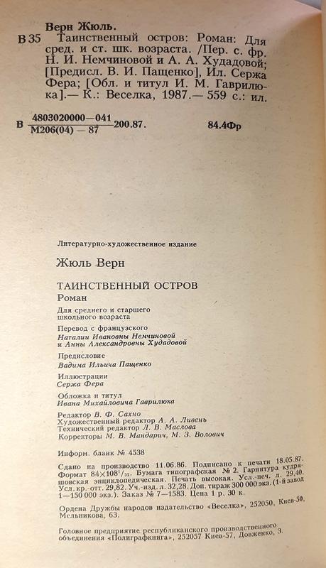 Таинственный остров. Жуль Верн. Арт.478. Издательство "Веселка", Киев 1987