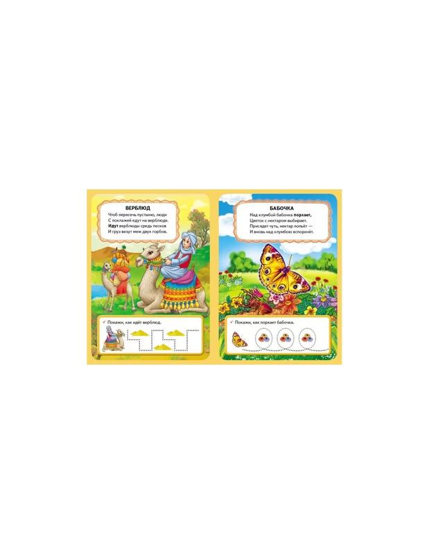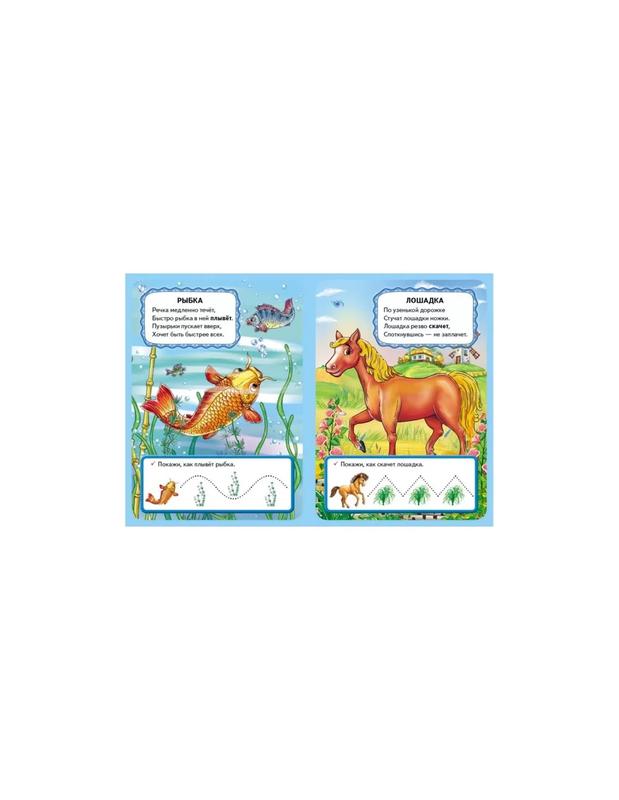 які потрібно обвести, — подані під кожним віршом й імітують рухи різних
