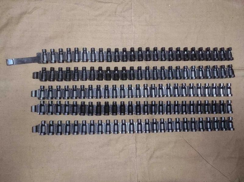 Оригинальная НОВАЯ металлическая пулемётная патронная лента на 125 патронов 7.62х54 для пулемётов ПКМ, Максим и др.Абсолютно новая, неиспользованная !Обратите внимание : 5 звена по 25 шт !Оригинал ! Производство Советский ОБОРОНПРОМ !